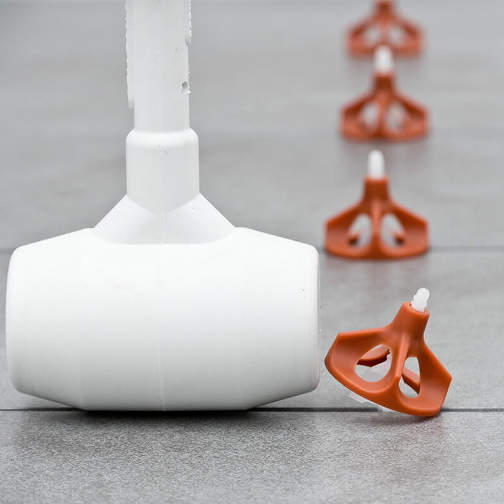 Nem igényel szerszámot sem a meghúzáshoz, sem az eltávolításhoz. A nyitott fejkialakítás lehetővé teszi a fugavonal átlátását, így ellenőrizhető a ragasztó vagy a csempe elhelyezése.