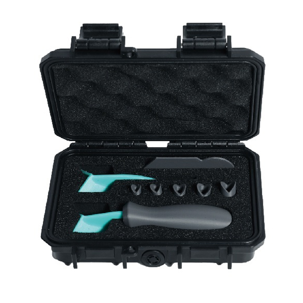 Minden tartozék egy strapabíró tároló dobozban kap helyet, amely biztosítja az átlátható rendszerezést, valamint védi a precíziós éleket a használatok között.