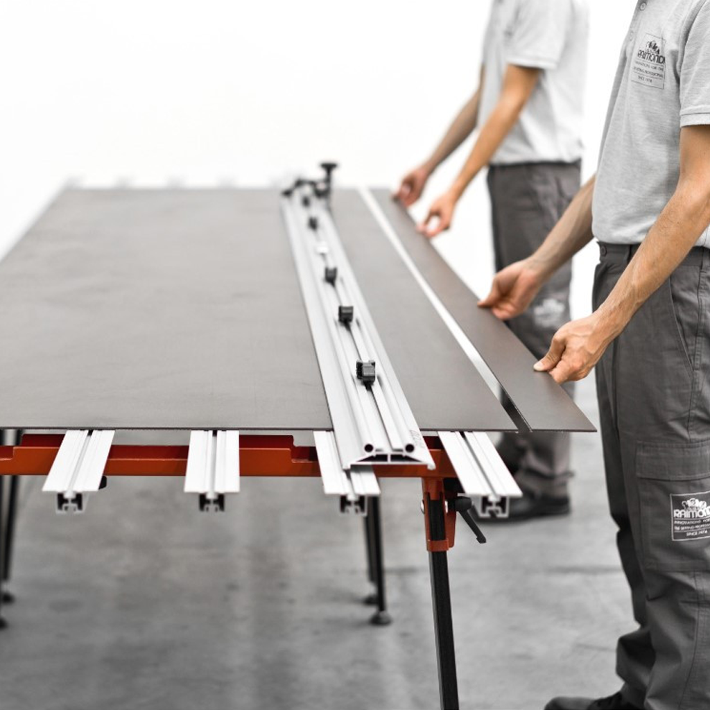 Raimondi Raizor Plus sínes vágórendszer nagyméretű kerámialapok precíz és hatékony karcolására és törésére.