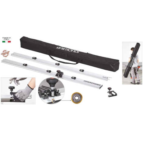 Alapértelmezett vágási hossza akár 330 cm, és 450 cm-ig bővíthető. A rendszer két egymáshoz csatlakoztatható sínből, egy vágóegységből, valamint egy pár progresszív nyomású PREMIUM fogóból áll. A síneket nagy szerkezeti merevség jellemzi, és összesen hat darab dupla peremű tapadókoronggal vannak ellátva, amelyek stabil rögzítést biztosítanak még mérsékelten texturált felületeken is.