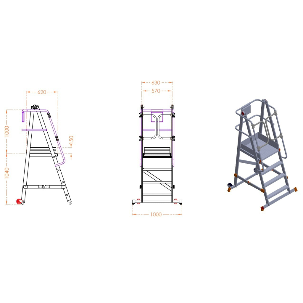 Ipari célokra készült, és különféle feladatokra használható mind professzionális, mind háztartási környezetben. Robusztus kialakítása és mobilitása alkalmassá teszi olyan munkákhoz, amelyek gyakori mozgatást és stabil hozzáférést igényelnek egy adott magasságban.