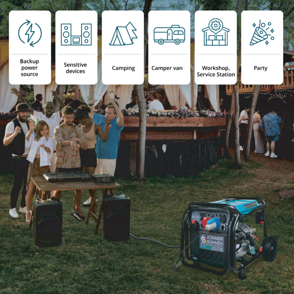 A Könner & Söhnen inverteres generátorok robusztus, kefenélküli, 100% réztekercselésű generátorral vannak felszerelve. A kompakt, nagy teljesítményű állandó mágneses generátor műanyag házban kapott helyet. Károsodás nélkül képes ellenállni a maximális terheléseknek, biztosítva a hosszú távú és megbízható működést.