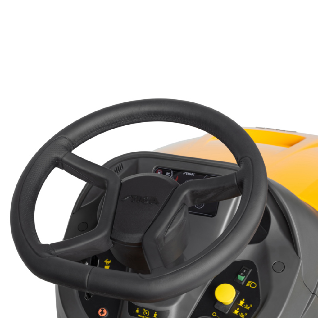 A STIGA ESTATE 9122 W kéthengeres Kawasaki motorral 8000 m²-es kertekhez ideális. Az új, modern motorháztető LED-es fényszórókat rejt és pedállal működtetett, hidrosztatikus sebességváltóval rendelkezik.