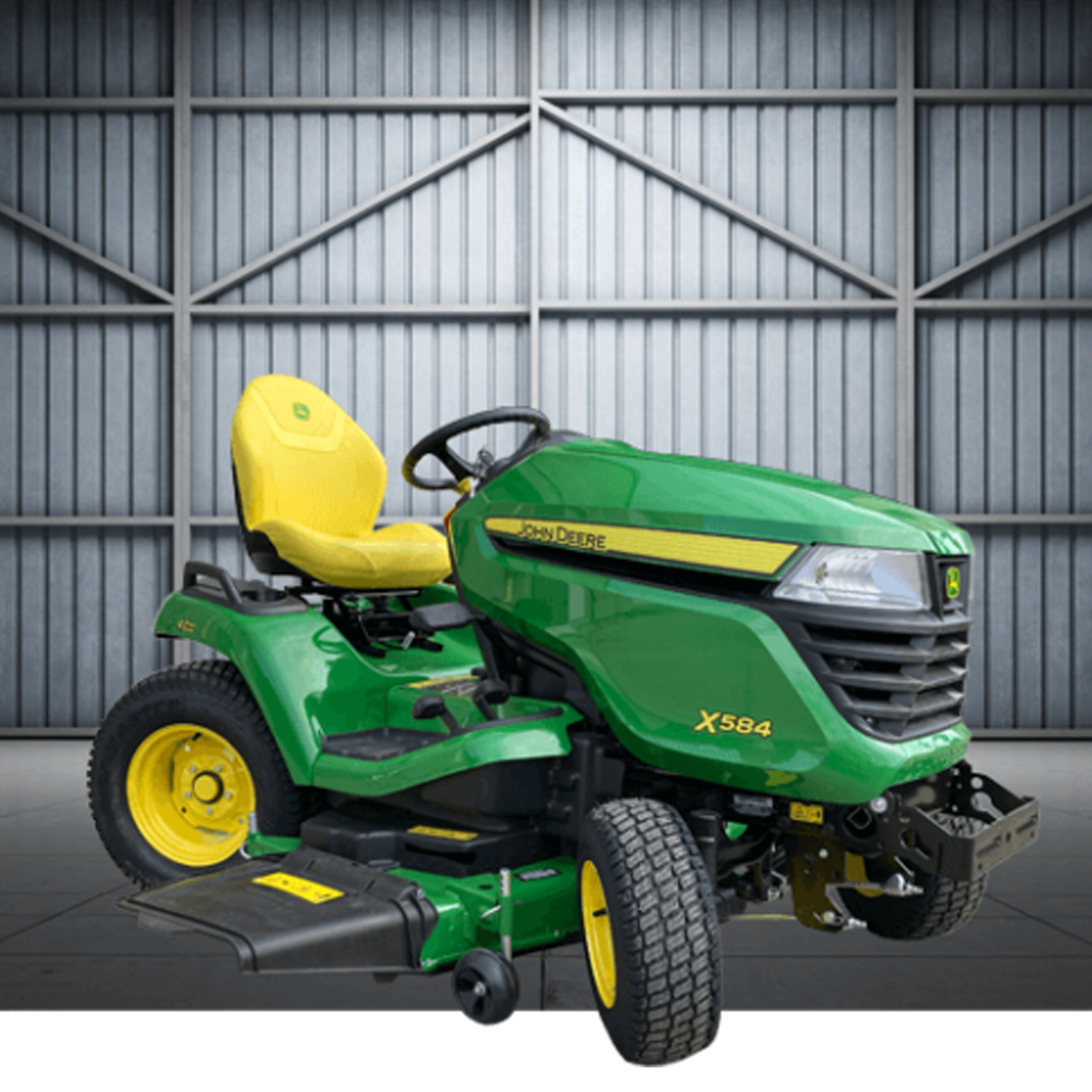 Nagy gyepterületre tervezve. A John Deere X584 fűnyíró traktor négy kerék kormányzásának, nagy teljesítményű, erőteljes motorjának és a tartozék 122 cm vagy az opcionális 137 cm vágási szélességű kaszaházának köszönhetően ideális választás 8000 m² feletti gyepterület gondozására.