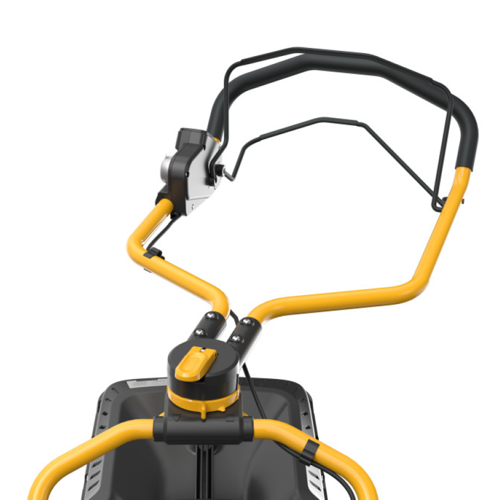 A fűnyíró szára állítható és összecsukható.