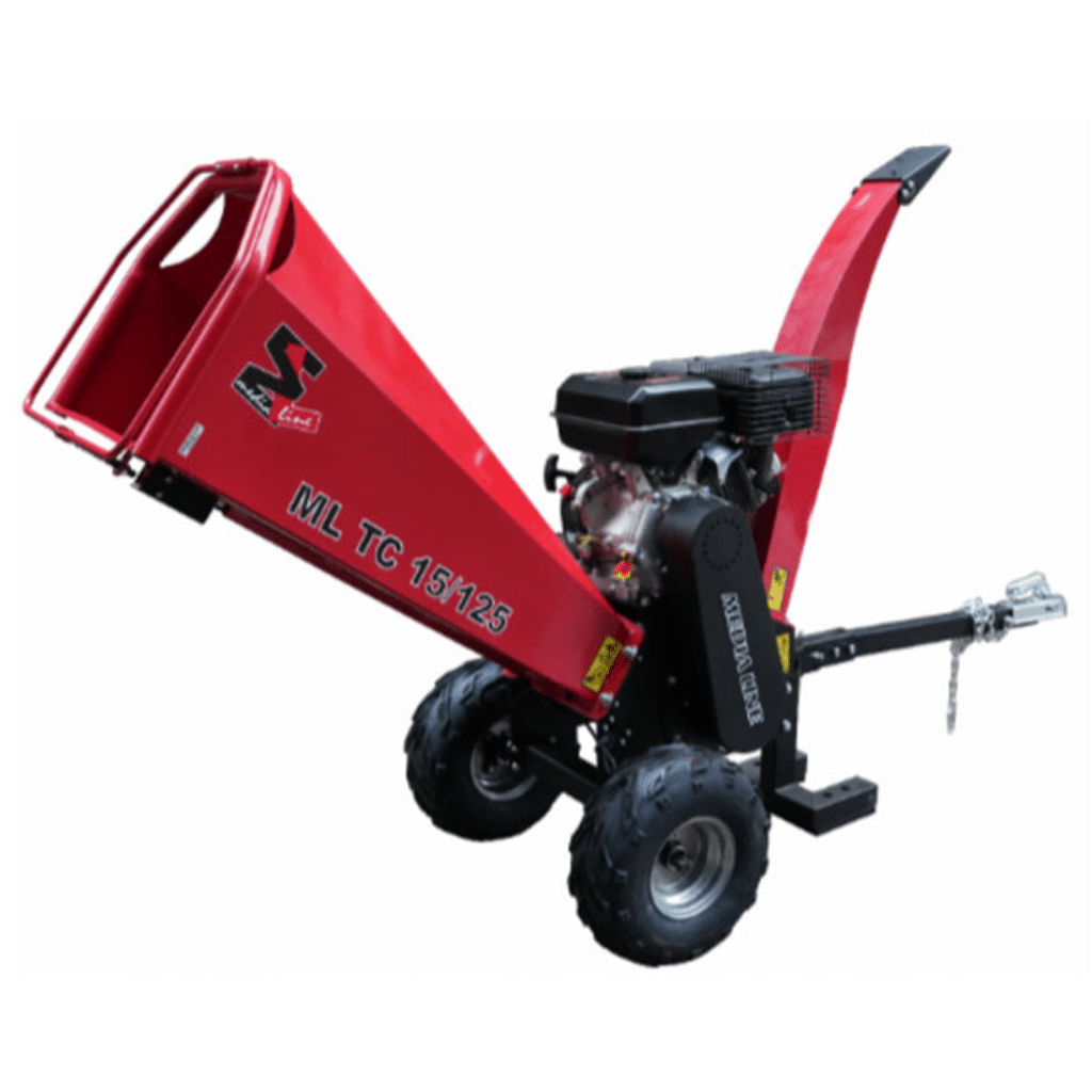 Media Line TC15/125 vontatható kivitelű benzines ágaprító 15 LE teljesítményű motorral max. 12 cm ágvastagságig. Aprítási teljesítménye 4-6 m3/h.