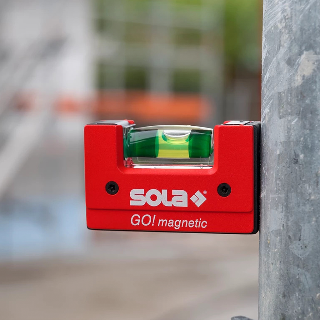 A Sola GO! Magnetic zsebszintező megbízható mérést tesz lehetővé egyszerűen és kényelmesen. Kompakt mérete révén a GO! sokféle helyzetben használható, és mindig kéznél tartható. Gyakorlati méretének köszönhetően a GO! Magnetic bármely nadrágzsebben elfér, és alig foglal helyet – tökéletes társ a napi munkához.