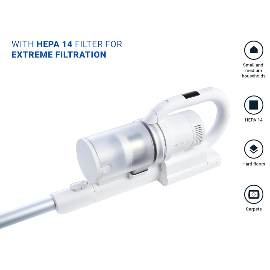 A Nilfisk S1 Allergy EU egy vezeték nélküli, 2 az 1-ben álló porszívó, amely rugalmas és hatékony takarítást biztosít. Az egész lakás hatékony tisztítására készült, erős motorral és három különböző szívási móddal rendelkezik.