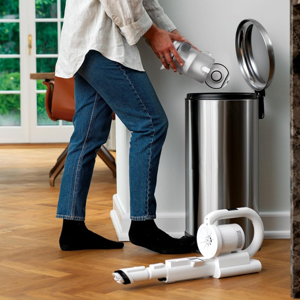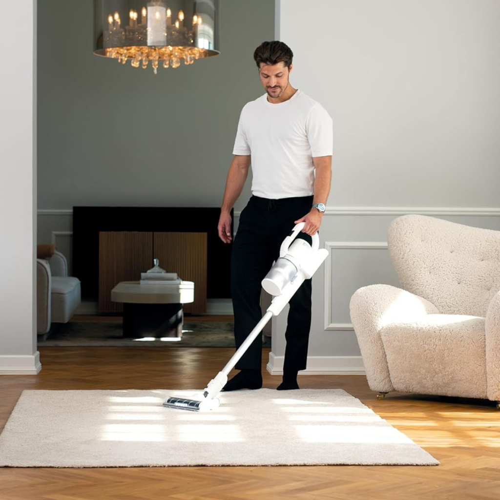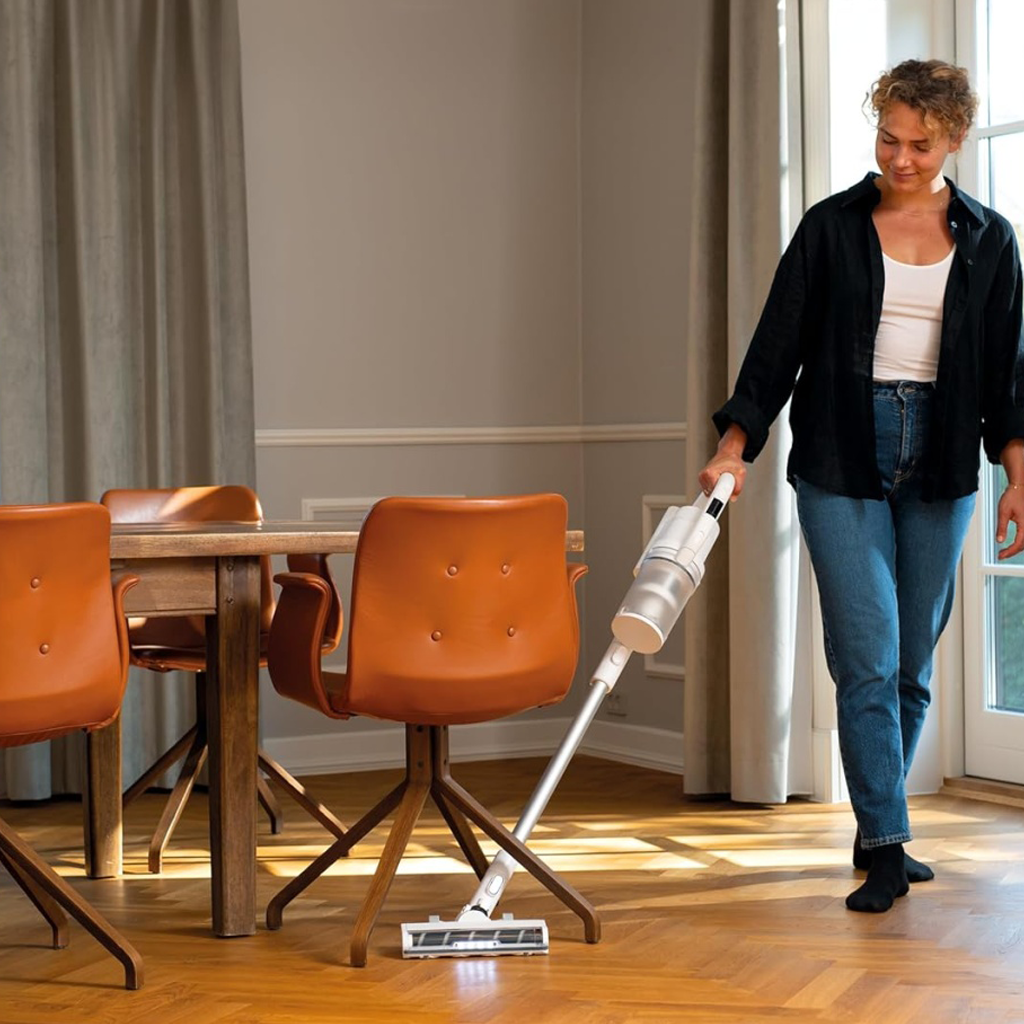 Az ergonomikus, ívelt markolat kényelmes fogást biztosít egy- vagy kétkezes használat során. Egyetlen mozdulattal kézi porszívóvá alakítható, így a nehezen elérhető helyek tisztítása is egyszerű.