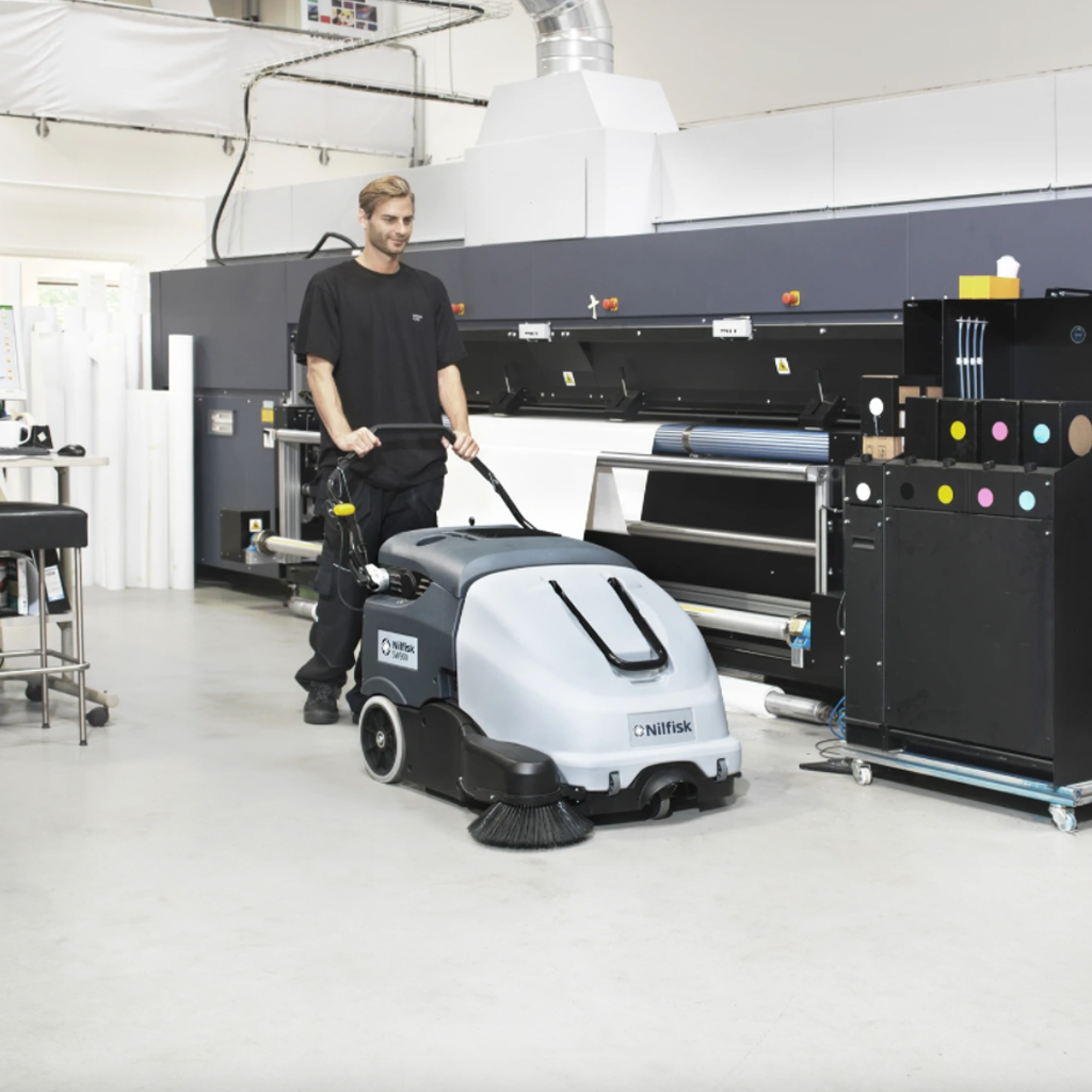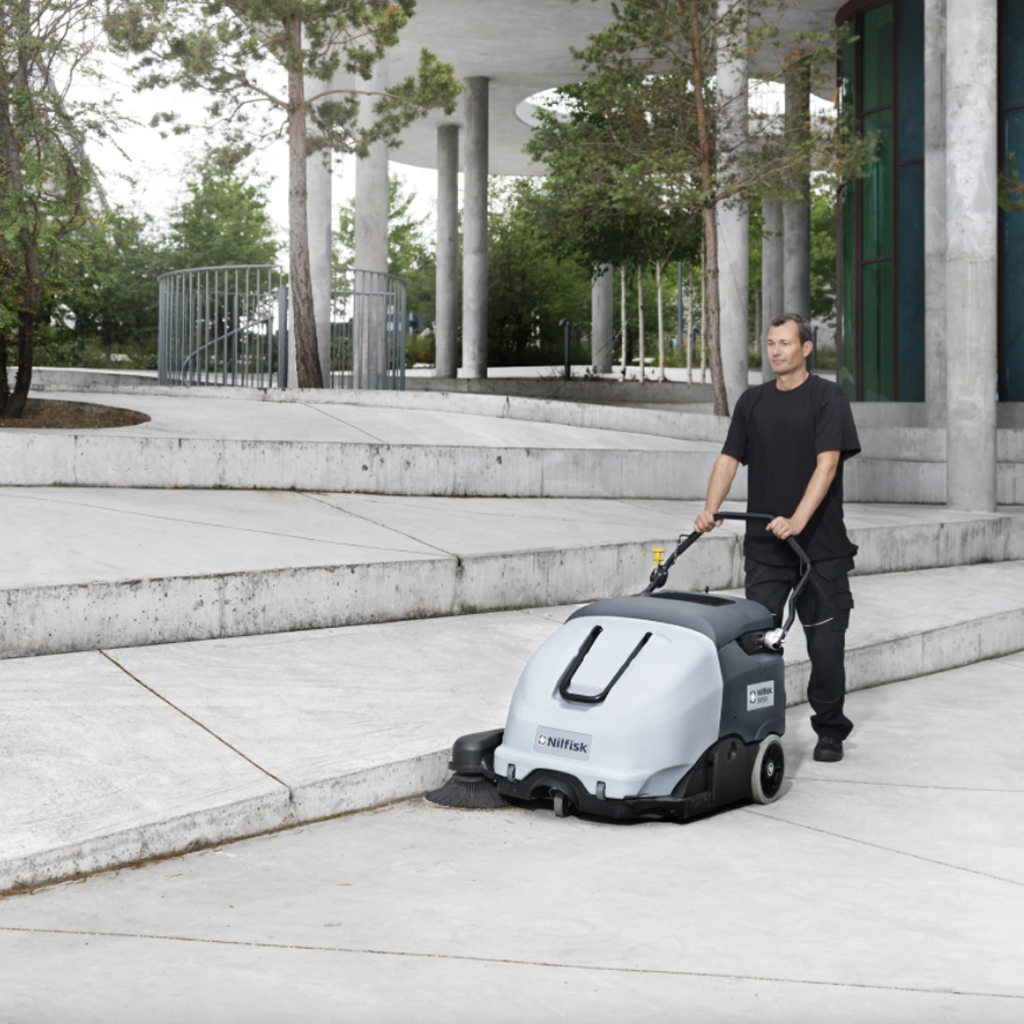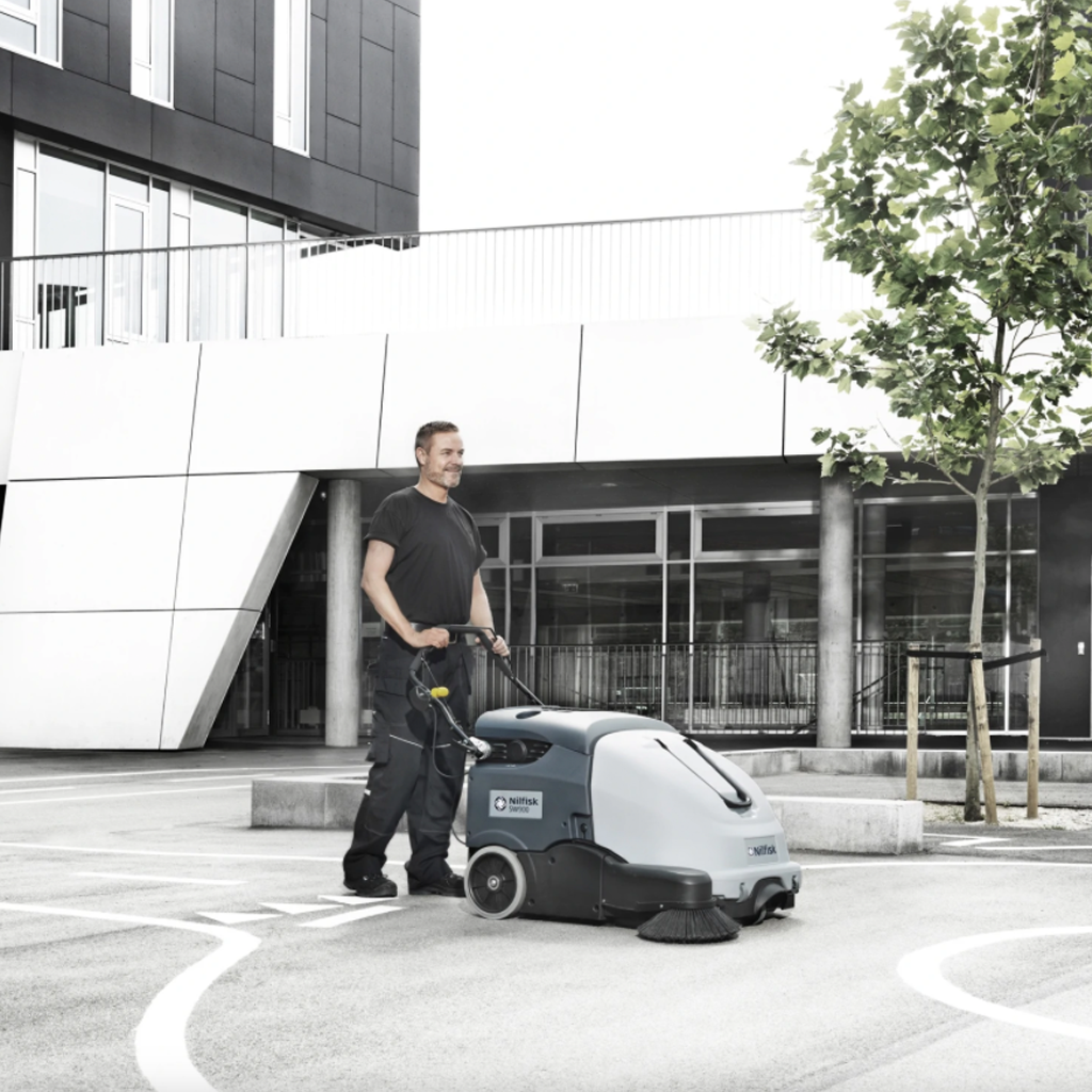 A Nilfisk SW 900 önjáró, gyalogkíséretű seprőgép beltéri és kültéri használatra egyaránt alkalmas, a hulladék pormentes seprését nyújtja. Növeli a mindennapi termelékenységet.