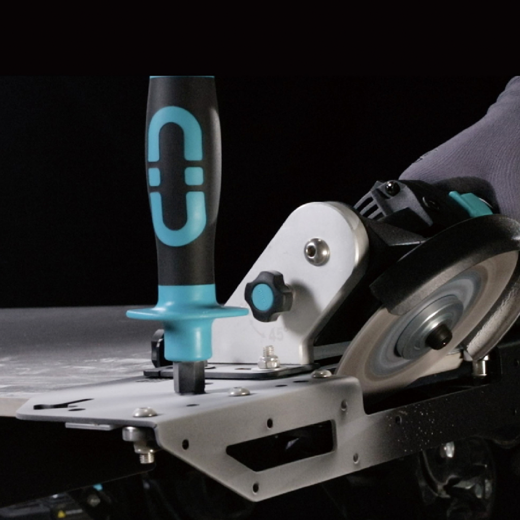 A vágóegység állítható, és 45°–48° közötti szögben dönthető. Az élvágóhoz egy előre felszerelt, 1200 W teljesítményű sarokcsiszoló tartozik, amelynek fordulatszáma 3000 és 11000 fordulat/perc között szabályozható.