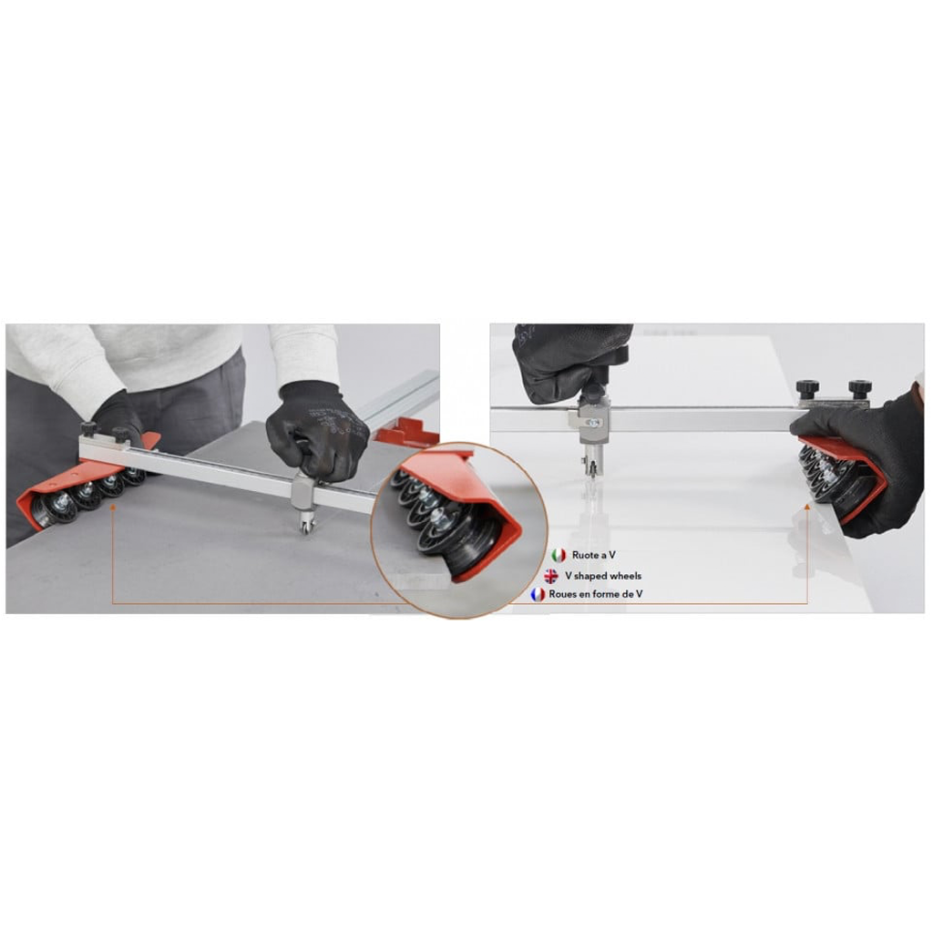 A Raimondi T-Cut párhuzamvágó egy rendkívül könnyű (1,7 kg), kis helyigényű eszköz kerámialapok vágásához.