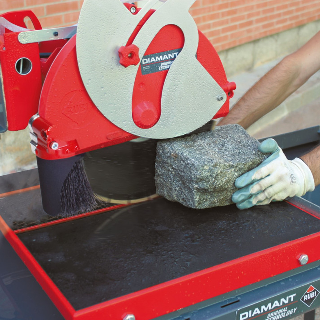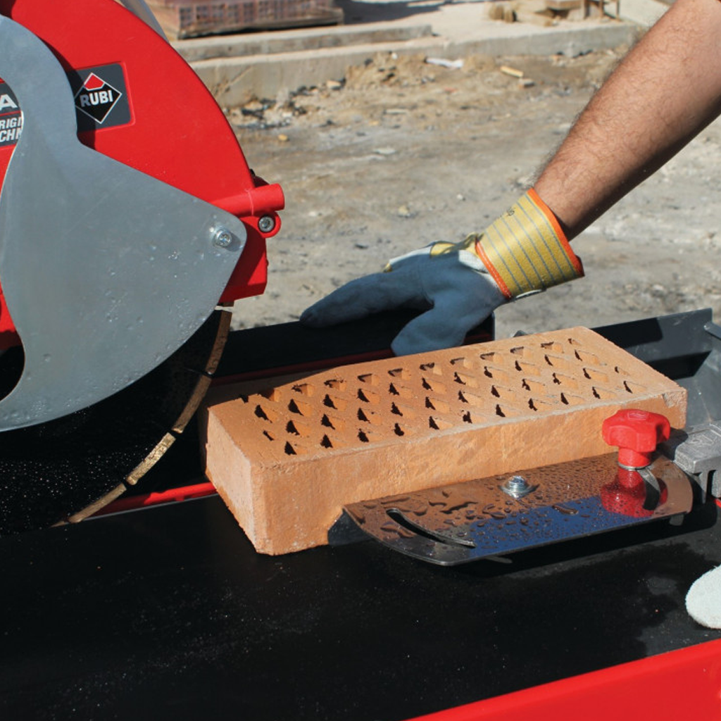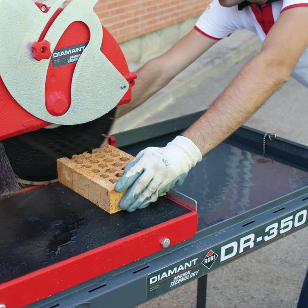 A Rubi DR-350 alkalmas mindenféle építőanyag vágására, mint például: falazó tégla, homlokzati tégla, tűzálló tégla, márvány, gránit és kerámiaburkolatok.